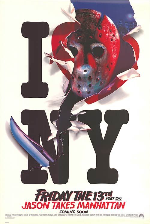 Film for me to review until they make more. That's right! I've reviewed them ALL! Isn't that fucked up? Well... If you get caught between the Moon and New York City... Kiss your ASS goodbye... But click here for more reviews first! Jason Takes Manhattan (1989) reviewed by J.C. Maçek III Who is solely responsible for the few views on this site But not for the fact that New York Tourism took a Dive after this film. Nobody was that scared, but nobody wanted to hang around with stinky guys like The Voor Whore either! Got something to say? Write it! | ||